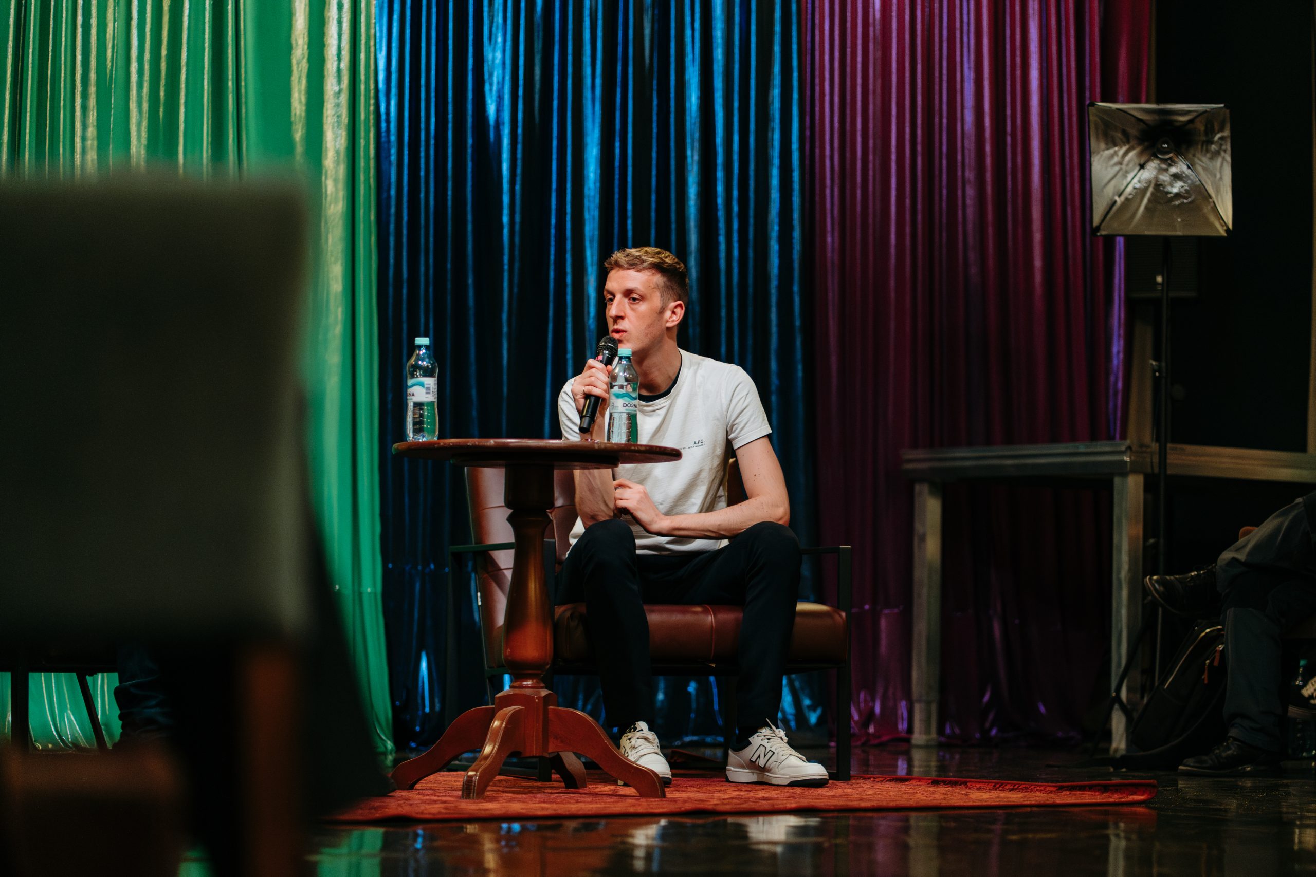 Întâlnirea a avut loc în contextul premierei spectacolului „Lupte și metamorfoze” după romanul „Luptele și metamorfozele unei femei” și fragmente din „Cine l-a ucis pe tata?” de Edouard Louis, regizat de Eugen Jebeleanu, la Teatrelli.
