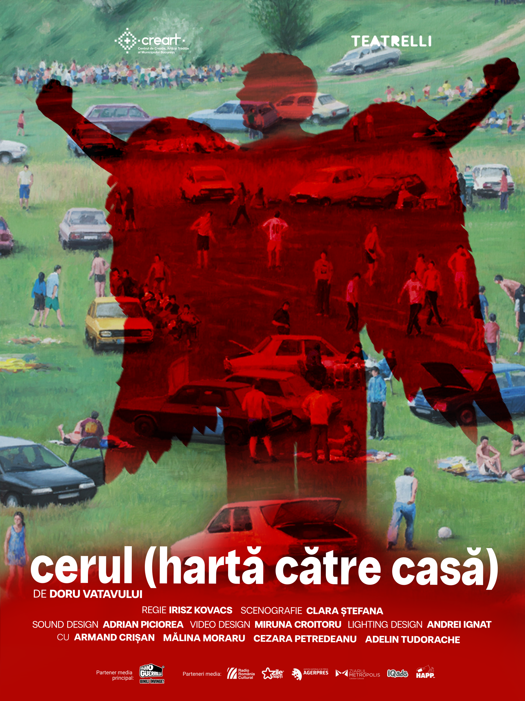 „cerul (hartă către casă)” este o meditație scenică despre felul în care ne construim existența din repetiții și speranțe, din oboseală și visare. Spectacolul vorbește despre căutarea sensului personal, despre acel moment în care ne întrebăm, poate pentru prima dată: pentru cine și de ce muncim, cu adevărat?