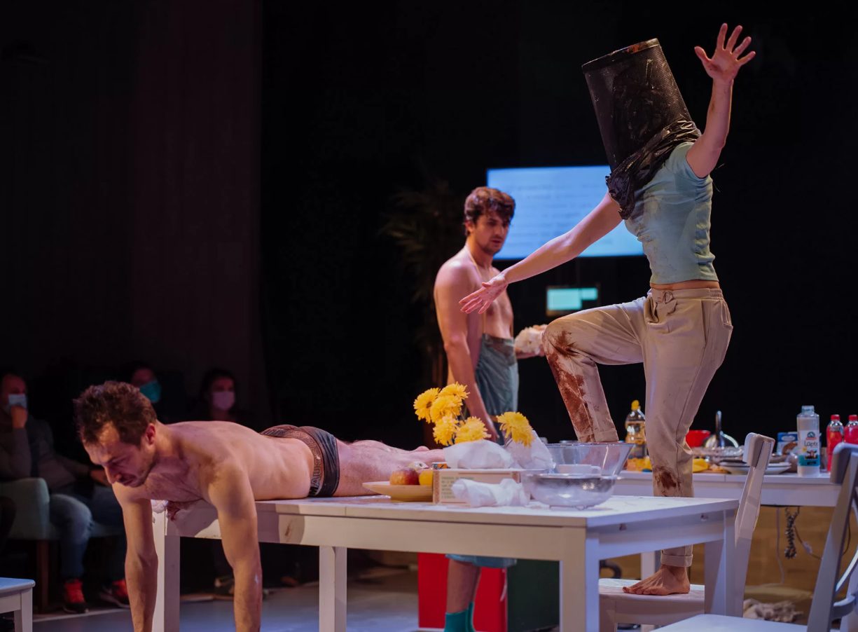 DUAL este un performance teatral non-verbal ce explorează tematica prieteniei și a relațiilor umane, folosind o poveste simplă ca pretext pentru căutările artiștilor: trei prieteni buni se întâlnesc să gătească împreună un desert.