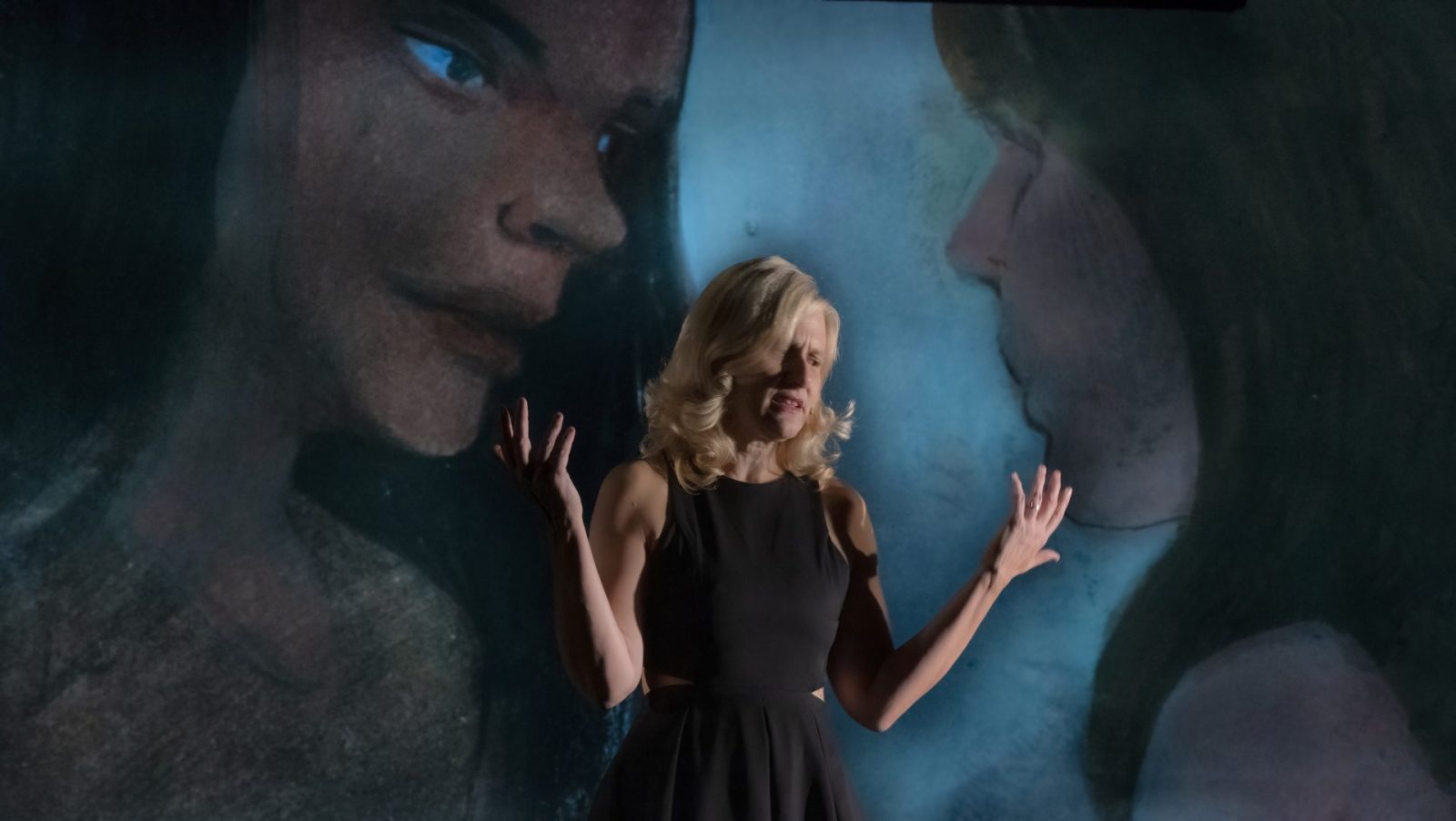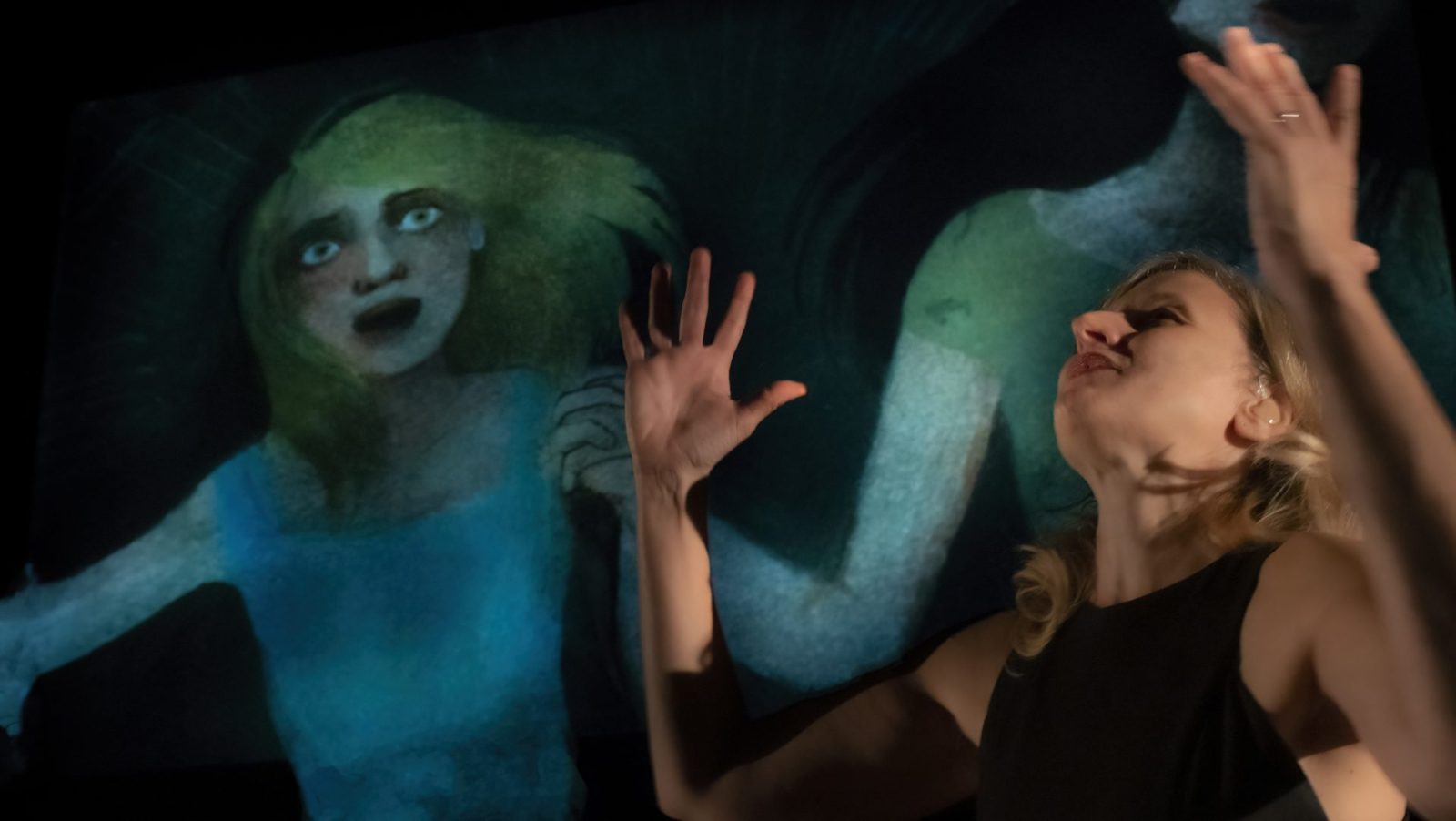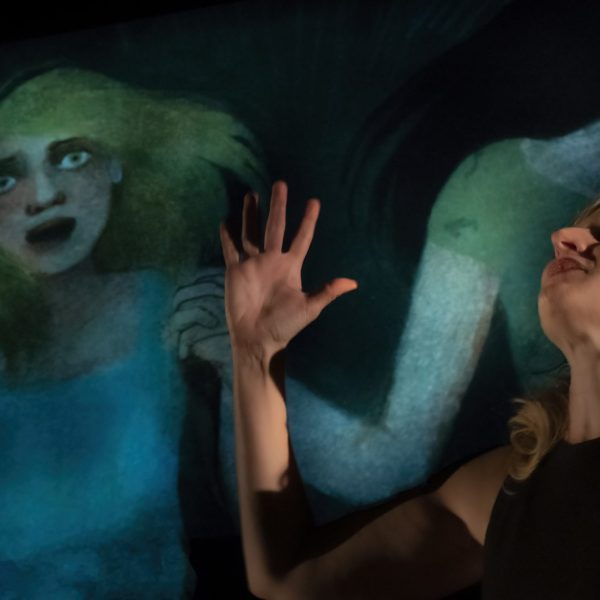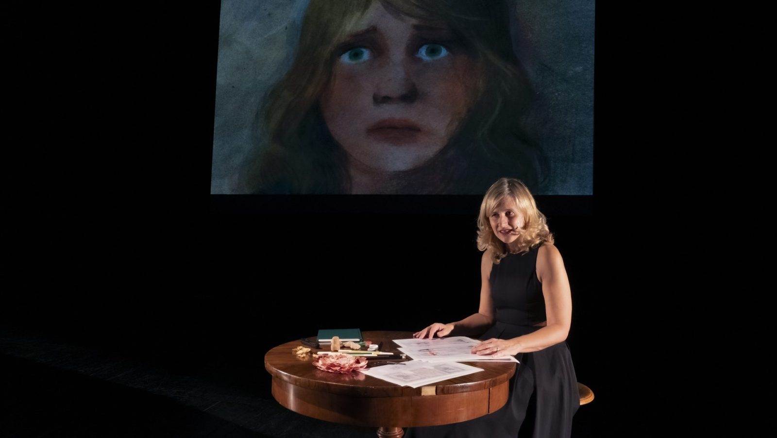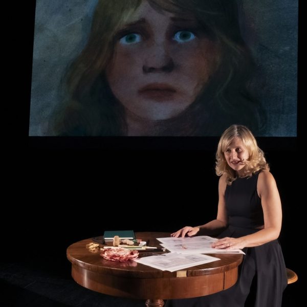 În plan scenic, Chiara Lagani dă glas cuvintelor Elenei Ferrante, în adaptarea pe care a realizat-o pornind de la banda desenată creată împreună cu Mara Cerri. În spatele ei, desenele animate din carte curg ca o memorie vie — imagini care respiră și ies din întuneric, dând trup viziunilor, fragmentelor și prezențelor invocate de text.