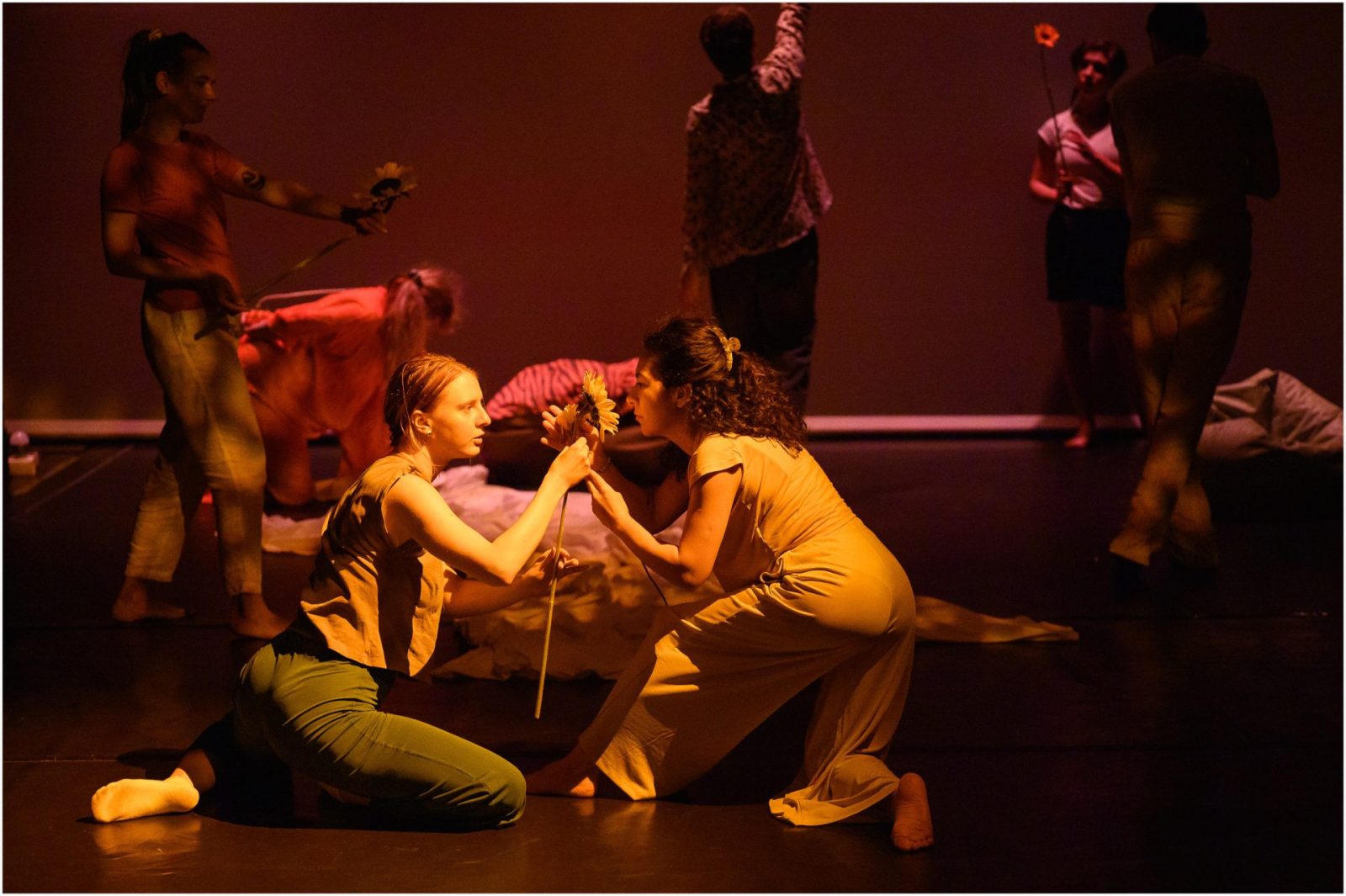 Ce urmează în viața noastră? Care sunt lucrurile simple pe care ni le poate oferi viața în contextul lumii dificile în care trăim? Cum ne putem bucura de prezent și cum putem vorbi prin mișcare și dans despre emoțiile noastre? Îți place să dansezi? Care sunt în fapt lucrurile importante și de care avem nevoie pentru a ne bucura plenar de experiența vieții? Care sunt lucrurile simple care-ți plac? Ce te doare? Ce este iubirea pentru tine? Te-ai gândit vreodată cum ai vrea să mori? Cum putem avea grijă mai bine de corpul și sufletul nostru?