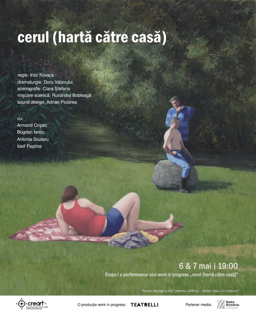 Prima etapă de lucru la producția „cerul (hartă către casă) a avut ca punct de plecare albumul de pictură al lui Șerban Savu – „Drifting”, pornind de la convingerea că picturile lui deschid o ușă, aprind o lumină și suspendă în timp momentele cotidiene cu care suntem atât de obișnuiți, încât privirea noastră se lovește de ele, fără a le mai nota, dar în care ne-am putea vedea reflectată întreaga viață.