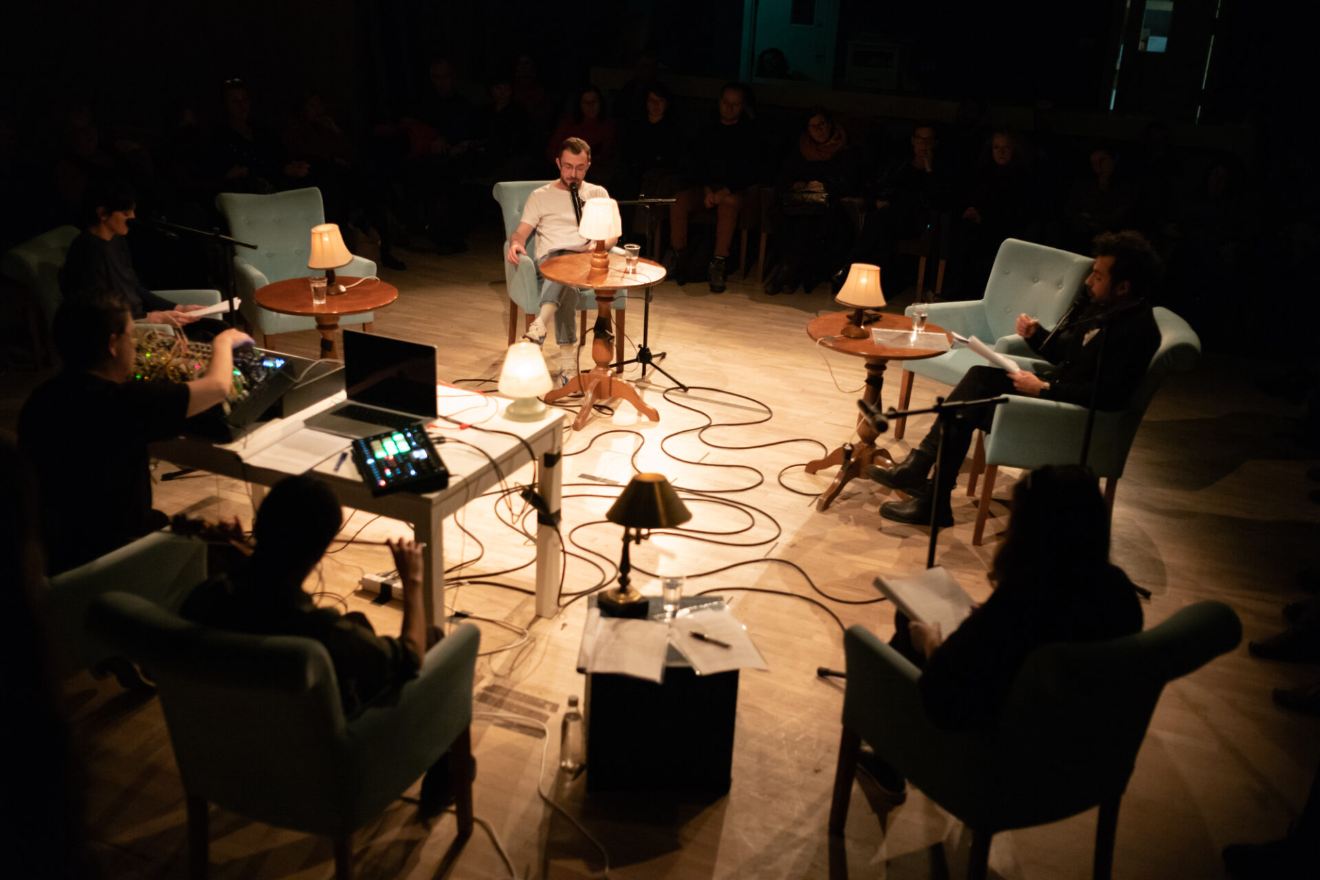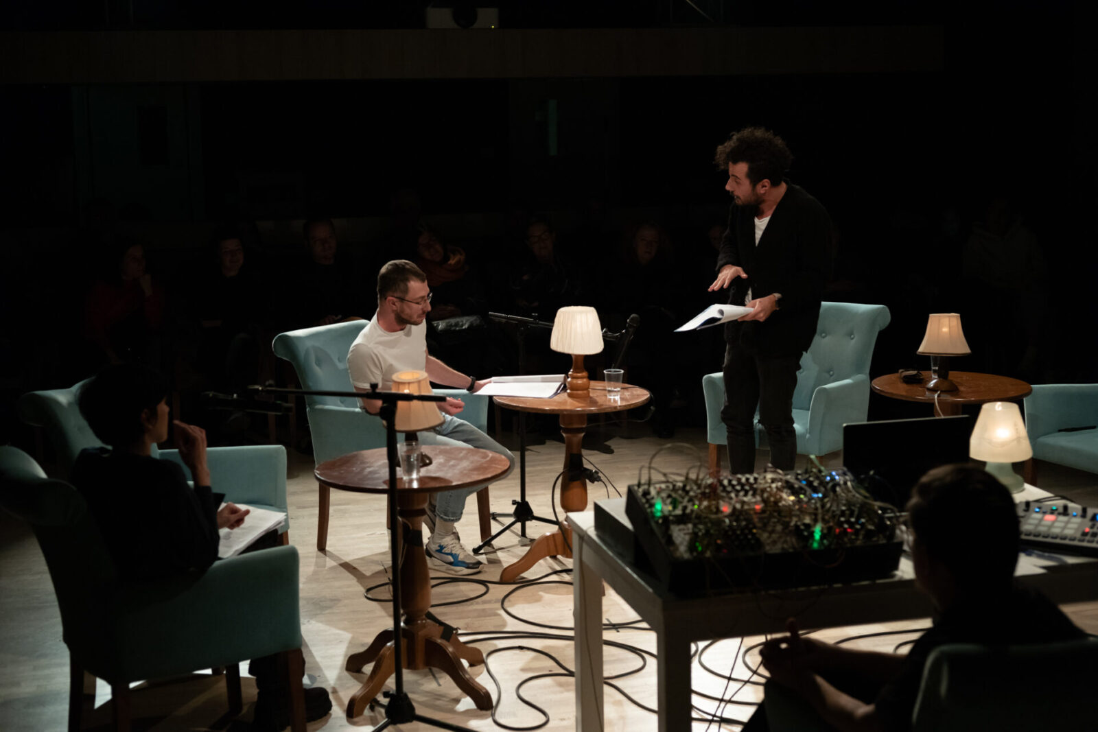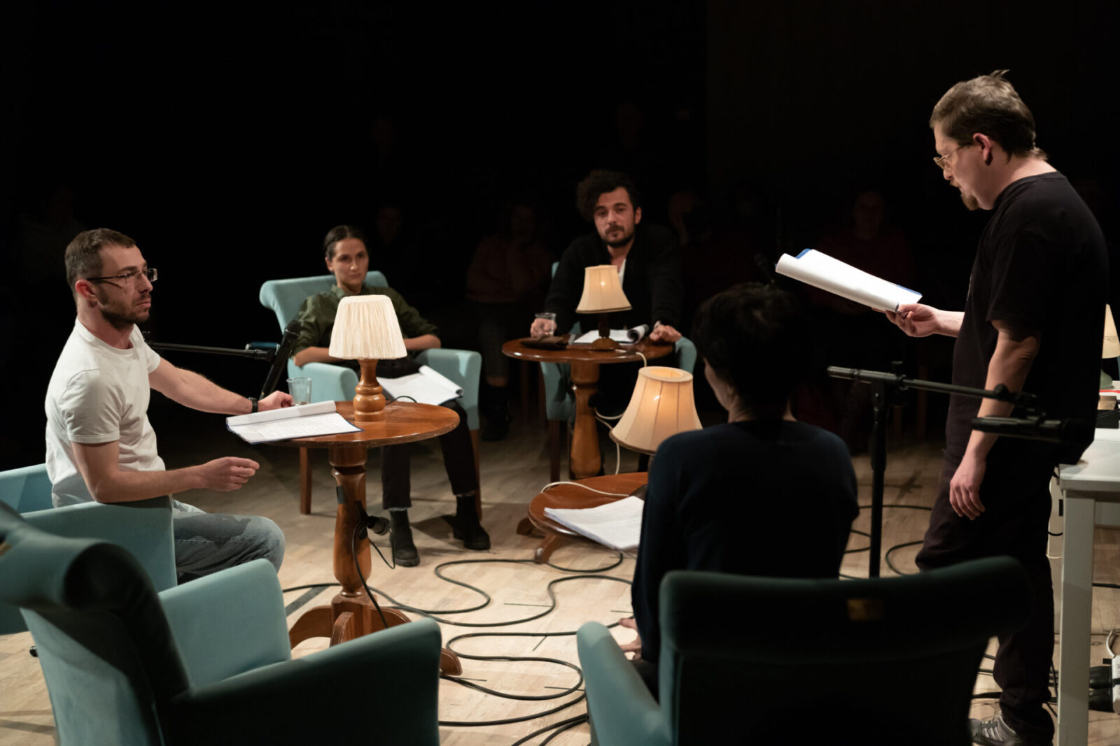 Prima etapă de lucru a constat în partea de documentare și scriere a textului dramatic și s-a finalizat în luna decembrie 2022 cu o lectură performativă – dezbatere cu public, alături de regizoarea și dramaturga Catinca Drăgănescu și performerii Nicoleta Lefter, George Albert Costea, Vladimir Purdel, Andrei Raicu, Bogdana Dima. Au fost adresate teme precum raportul cu istoria, relația cu statul, sentimentul de apartenență, identitate națională vs. identitate europeană.