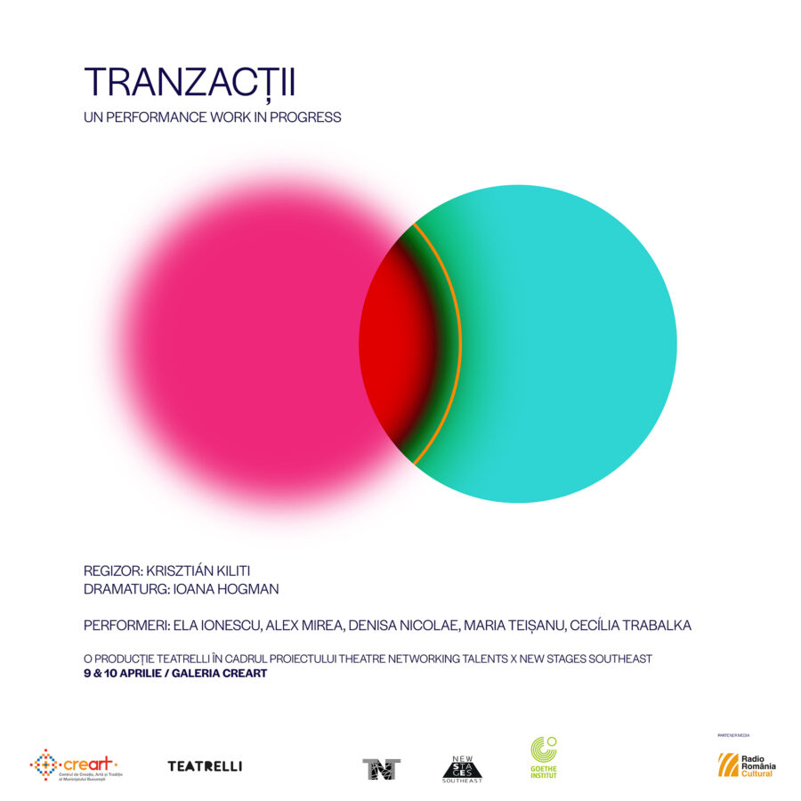 Tranzacții, în regia lui Krisztián Kiliti și dramaturgia Ioanei Hogman, este un performance care aruncă o privire asupra nevoilor, dorinţelor, dar şi decepţiilor noastre, prin lentila unor meserii care implică experienţa apropierii. Dezvoltat sub forma unei serii de cinci performance-uri / lecturi performative de tip 1:1 (un spectator și un performer), demersul spectacolului lansează întrebări despre ce altceva se găsește, de fapt, în spatele unei tranzacţii atunci când plătim pentru un serviciu, dincolo de produsul concret şi suma aferentă.